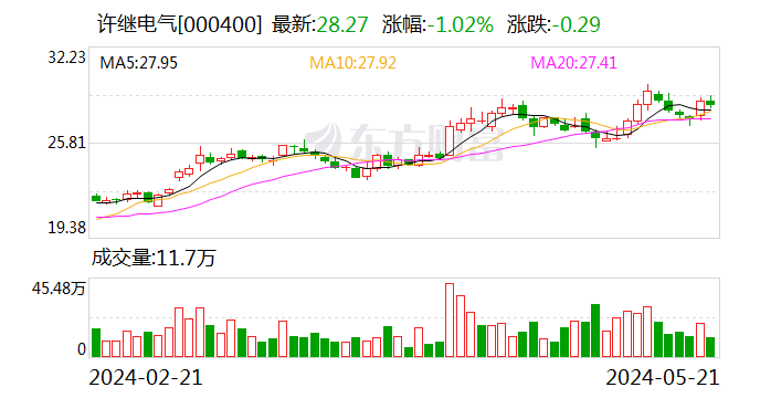 许继电气股份有限公司(000400)发布定期报告:年度报告显示,截至2023全年,公司当期实现电器机械和器材制造业产量26375677台/套,同比增长20.49%;当期实现销售收入170.61亿元,同比增长13.51%;当期实现电器机械和器材制造业销量170.61亿元,同比增长13.51%。